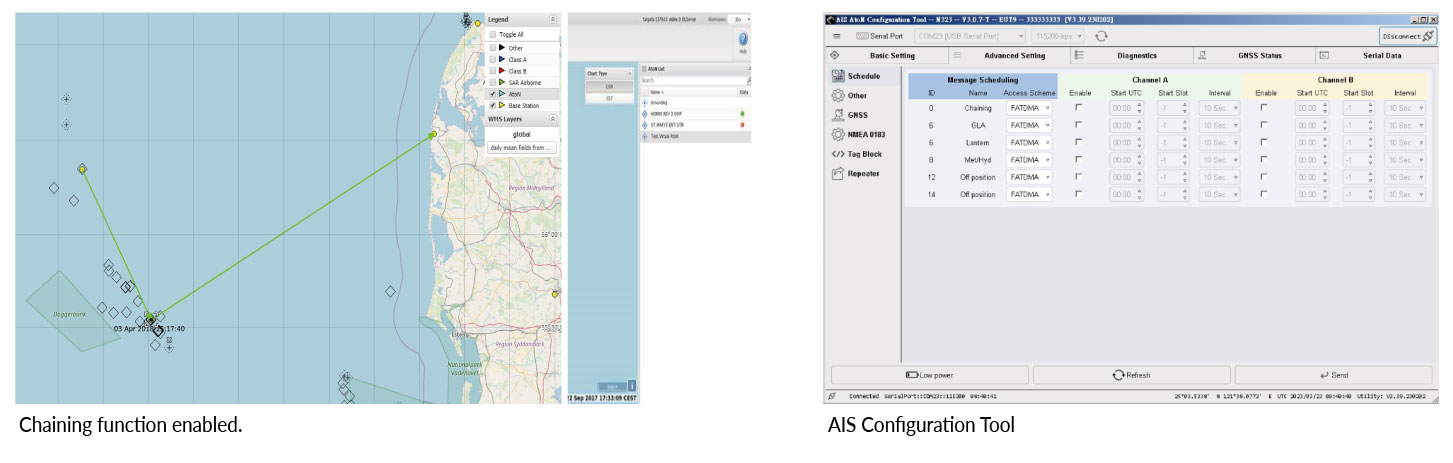 Virtual/Synthetic AIS AtoN support and outstanding Tx/Rx sensitivity.